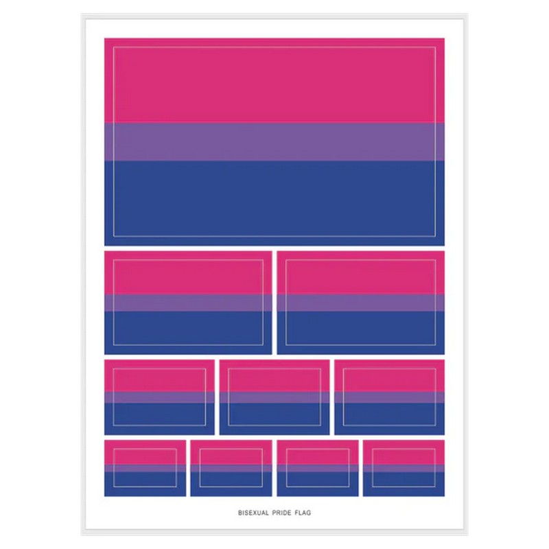 Show your bi pride on every surface! This sticker sheet includes multiple sizes of the bisexual pride flag in bold pink, purple, and blue stripes — perfect for water bottles, notebooks, laptops, phone cases, or anywhere that needs a little more visibility and love. Waterproof and durable, these stickers let you proudly represent your identity.