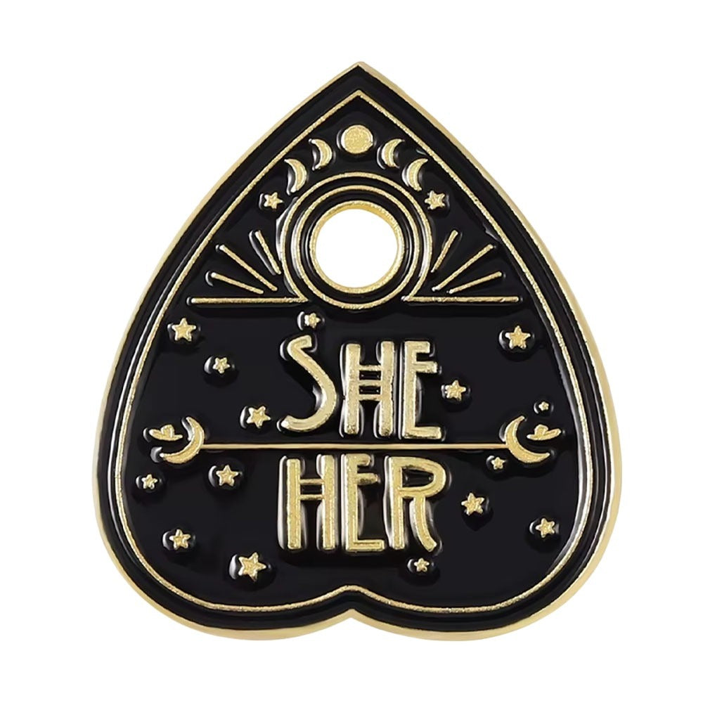 Enamel Pin: She/Her Planchette Pronoun Pin
