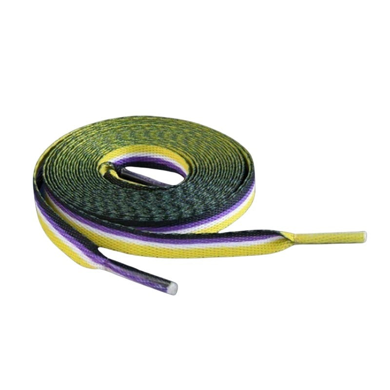 Make a statement with stripes of yellow, white, purple, and black — the bold colours of the non-binary flag. These laces are a perfect way to celebrate living beyond the binary, one step at a time.