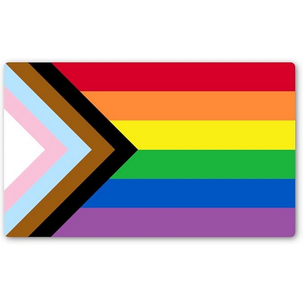 Let your Pride flag fly — on your laptop, water bottle, or anywhere you want visibility and vibrance. This durable vinyl sticker features the Progress Pride Flag design by Daniel Quasar, highlighting the inclusive colours that represent Black, Brown, trans, and non-binary communities alongside the classic rainbow.