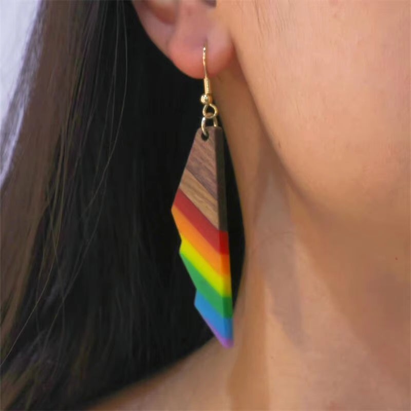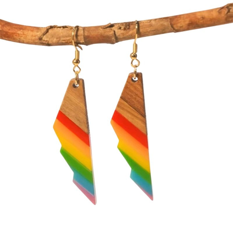 Make a statement that strikes with pride! These lightweight lightning bolt earrings feature a vibrant rainbow stripe paired with natural woodgrain for a bold yet earthy vibe. Perfect for festivals, Pride parades, or everyday queer magic — they’re loud, proud, and light as air.