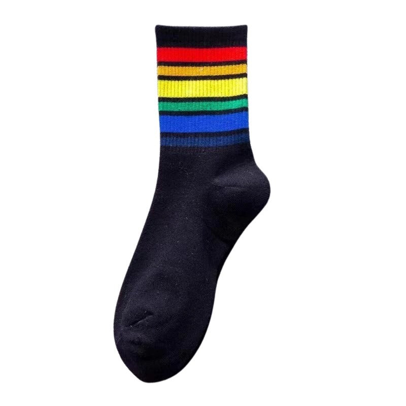 Retro Rainbow Crew Sock (Black or White)